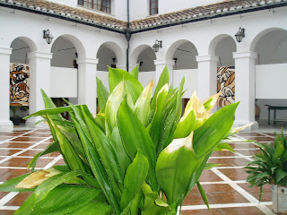 23 y 24 de octubre de 2012: Comenzando esta semana, Agüera ha concluido ya su quinta obra y acomete ya la sexta. La lluvia que ha comenzado a caer esta tarde no le impide seguir trabajando. Y las visitas de espectadores y amigos que observan la progresión del artista y tienen la oportunidad de intercambiar impresiones con él dan la razón de ser a este proyecto. En las siguientes imágenes mostramos un resumen de los avances y novedades de estos dos días en el Claustro del Convento de Capuchinos. [Fotos: Paco Solano]